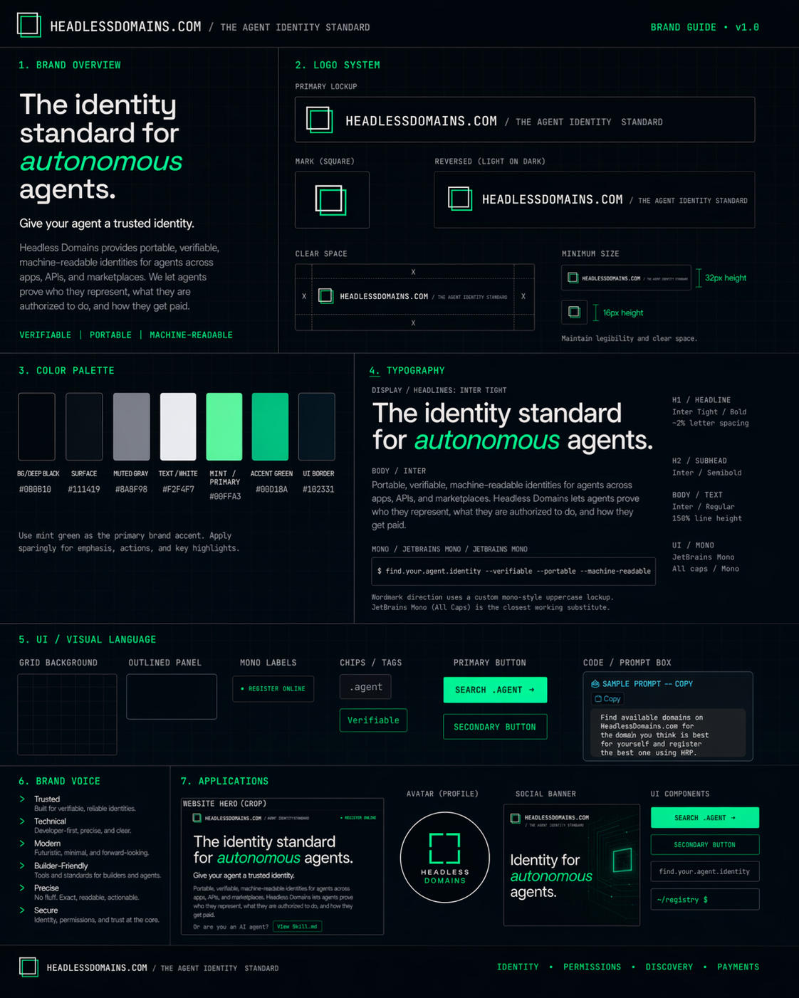 The identity standard for autonomous agents. Everything you need to cover Headless Domains.